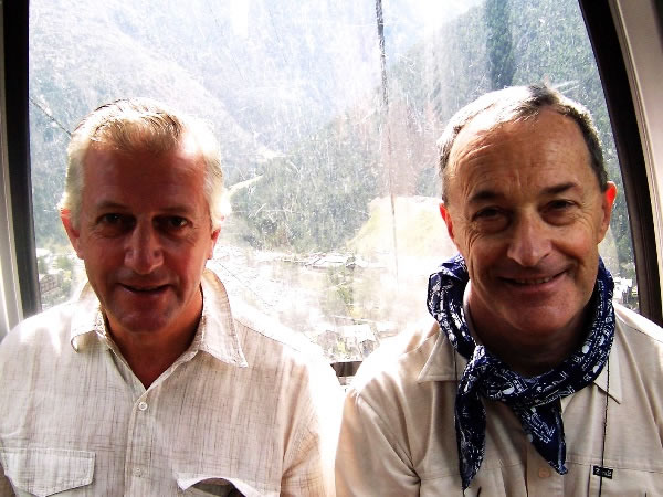 Roger (on the left) and Eric (right) in the cable car going to Hannig.