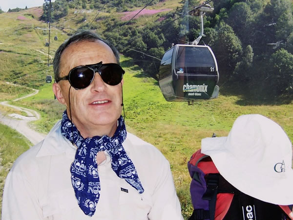 Eric on the aerial cable car from Le Tour to Charamillon.