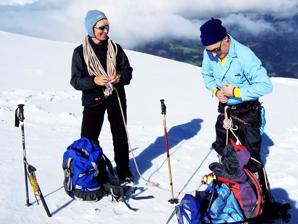 At 10:00 am – six or seven hours after people usually set out for the summit of Mont Blanc – we were roping up on the snow slopes above the Goûter hut.