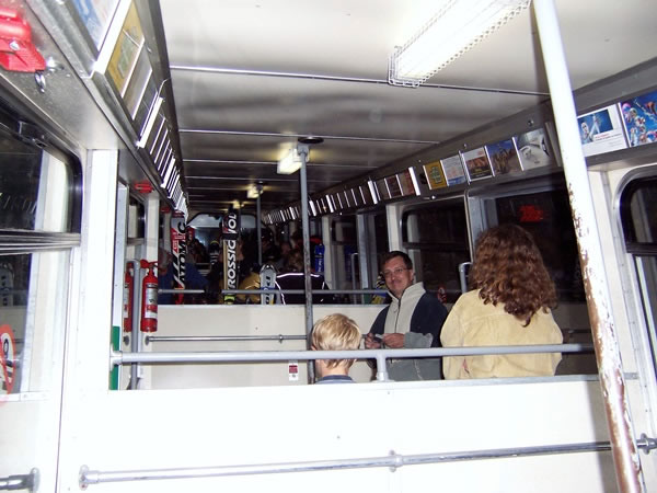 Greg and I decided to do one last climb before we left Switzerland. We got up at 5:00 am on Thursday, 19 August 2004, and got the first aerial cable car from Saas-Fee to Felskinn. We then caught this underground (or, rather, under-ice) train to Allalin, which is 3,500 metres / 11,483 feet above sea-level. |