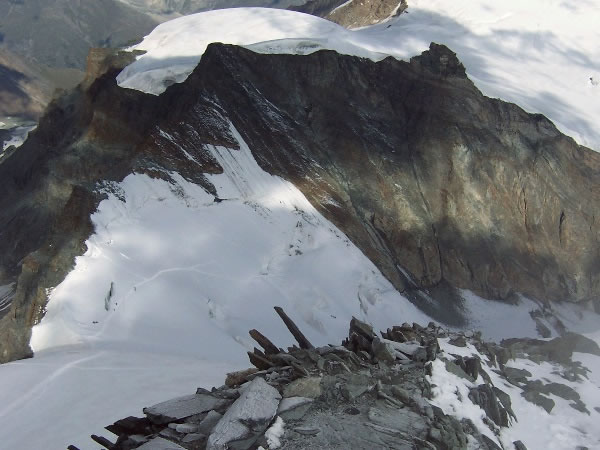 Looking down at climbers below us as we neared the top of the peak.