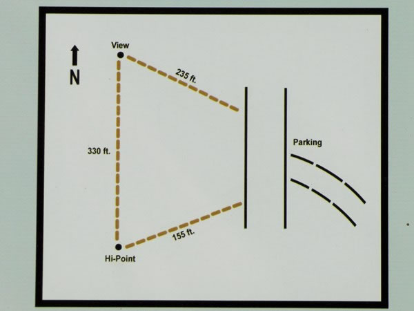 The “Welcome to Plum Creek: Mt Arvon” sign also includes this sketch-map showing the way to the highpoint and also to the spot where there is a view out across the woods and towards Lake Superior.