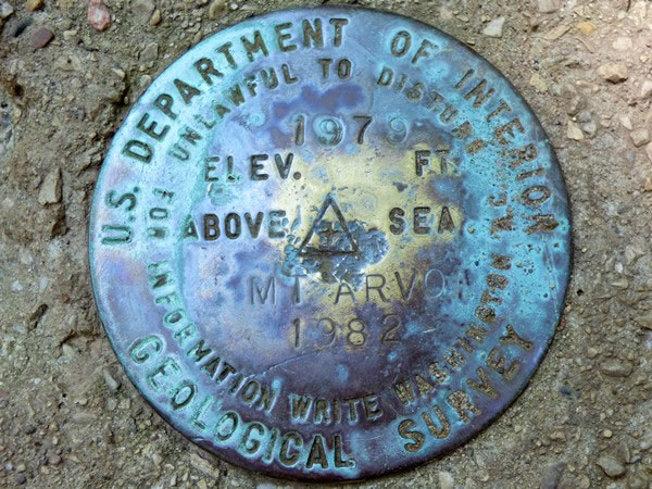 The US Geological Survey marker on the summit of Mt Arvon.