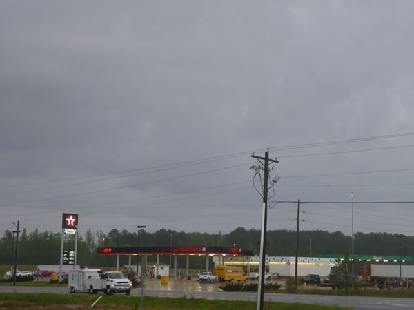 In the late afternoon, while I was driving south-east on US federal highway 78, thunder, lightning and rain led me to pull off the freeway at Winfield, Alabama, and thus, somewhat inadvertently, the Hampton Inn in Winfield became basecamp for my “assault” on Mt Cheaha. This is a photograph of the view from the entrance to the hotel. |