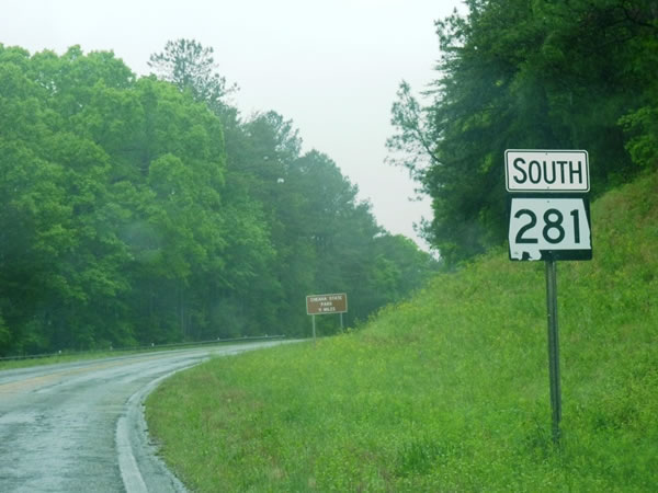 I then headed south-west on Alabama state route 281. The brown sign in the distance says CHEAHA STATE PARK 11 MILES.