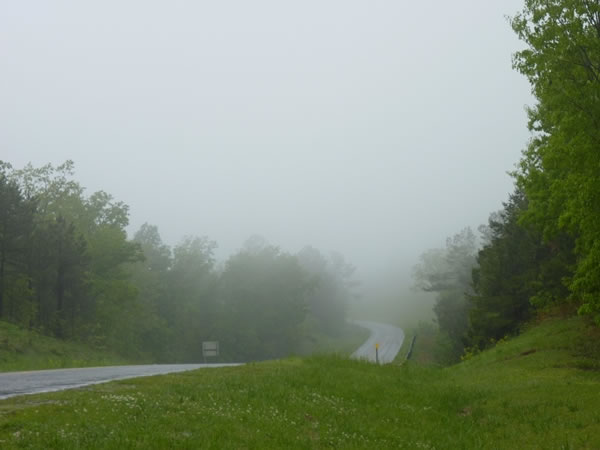 As Alabama state route 281 climbed up towards the Cheaha State Park, it got more and more misty.