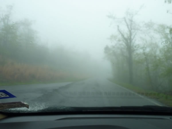 As I drove up the final part of the road towards the top of Mt Cheaha, the mist got thicker and thicker.
