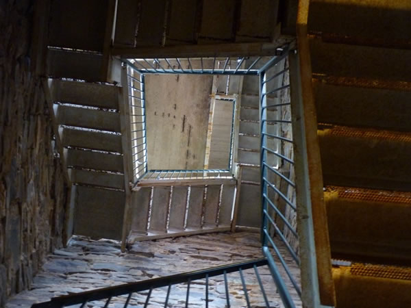 A photograph looking up the stairwell towards the top of the Mt Cheaha observation tower.