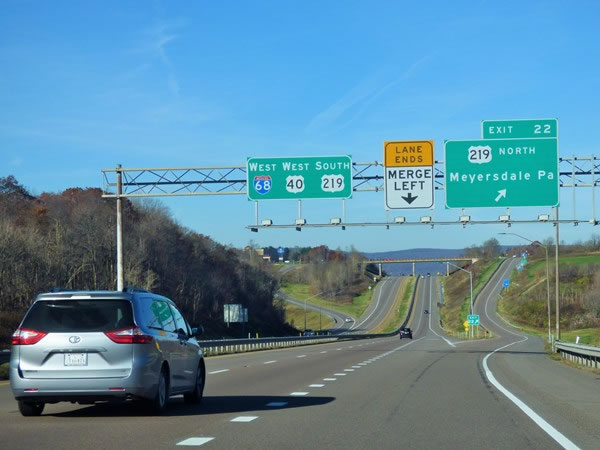 After driving west on the I-68 US interstate highway for 20 miles / 32 kilometres, I turned right in order to head north …