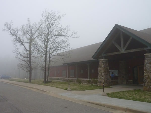 … and went first to the mist-enshrouded Mt Magazine State Park visitor centre, where …