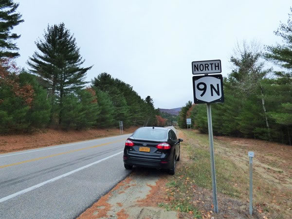 Heading west from Elizabethtown, NY, on New York state route 9N, and …