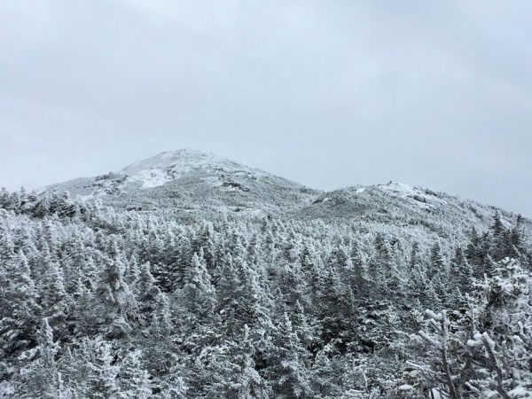 This photograph – also by Cindy Jobling – looks up towards the summit of Mt Marcy. However, when Cindy and Kristin were only a few hundred yards away from the summit, they decided to turn round. It wasn’t the snow that caused them to turn back in a classic case of “so close and yet so far”, but it was … |