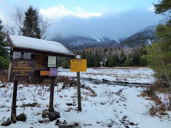 As I got further down the mountain, the sky became noticeably clearer and the weather warmer, as this photograph taken at 4:35 pm at the registration station above the Marcy Dam shows.
