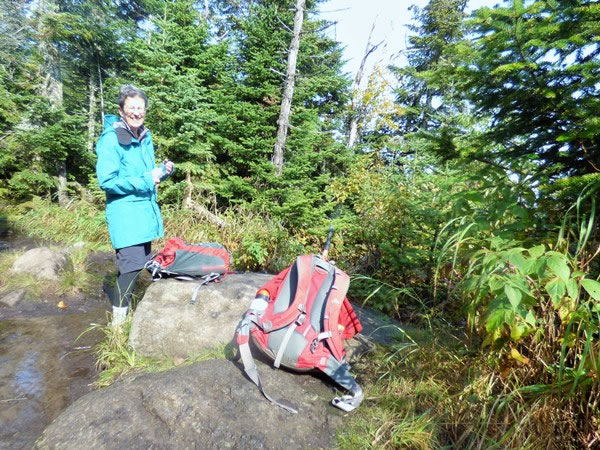 At 10:30 am – more than four hours after we set out from the trailhead – we stopped in a small clearing to enjoy the sun, a drink, some snacks, and …