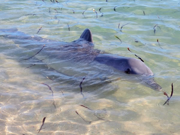 Bottlenose dolphins regularly come in close to the shore at Monkey Mia on the eastern edge of Cape Peron.