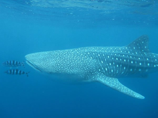 … a whale shark. Although they are filter feeders, they are sharks – not whales – and they are the largest species of fish in the world. The whale sharks we saw were about 7.5 metres / 25 feet long, but some grow to be as much as 12 metres in length. Seeing whale sharks and swimming with them was one the greatest wildlife experiences I’ve ever had. |