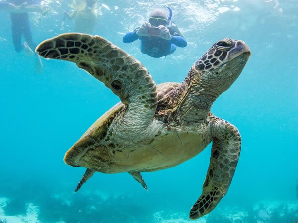 We also snorkelled on the Ningaloo reef, and a professional underwater photographer took this picture of me swimming towards and photographing a large turtle.