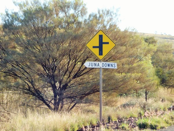 At 8:10 am, 137 kilometres / 85 miles after leaving the Capricorn roadhouse, we saw this road sign letting us know we had to turn left to take the road – also known as Packsaddle Road – that heads towards the Juna Downs Station (