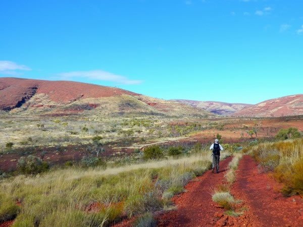 The scars of the rough four-wheel drive track up the lower slopes of Mt Meharry are visible near the middle of this picture.