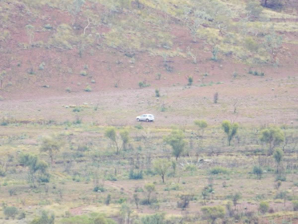 With the aid of a 60-times optical zoom on my camera, we were able to see our rental car on the plains below the mountain.