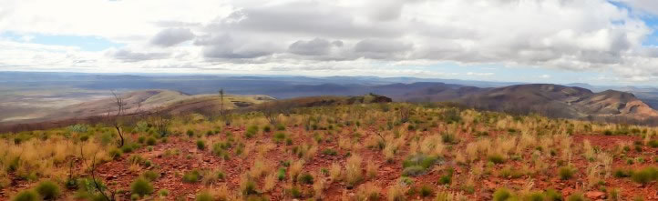 A panoramic view looking east from the summit of Mt Meharry.