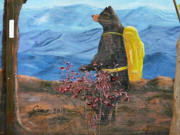 I liked this mural on the side of a building on Damascus’ main street, and I particularly liked the white blaze on a pole in front of the painting, because white blazes are used to show the way along the Appalachian Trail.
