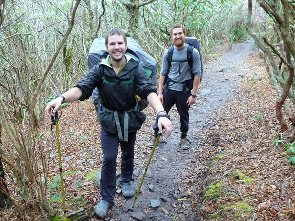 Twenty-five minutes later, I met Gumbi and Burp, Appalachian Trail through-hikers from New Jersey. I was interested in their shoes – crocs and sandals – but they assured me their footwear was up to the job.