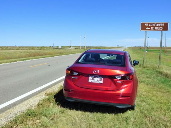 A mile-and-a-half after entering Kansas, I reached the intersection with the road to Mt Sunflower, and turned left onto it.