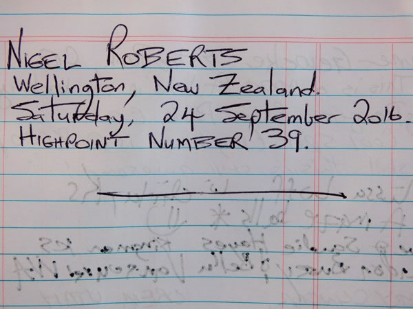 My entry in the Mt Sunflower summit register.