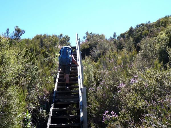 Heather climbing up out of one of the many small gullies that carve their way down the lower flanks of Mt Ruapehu.