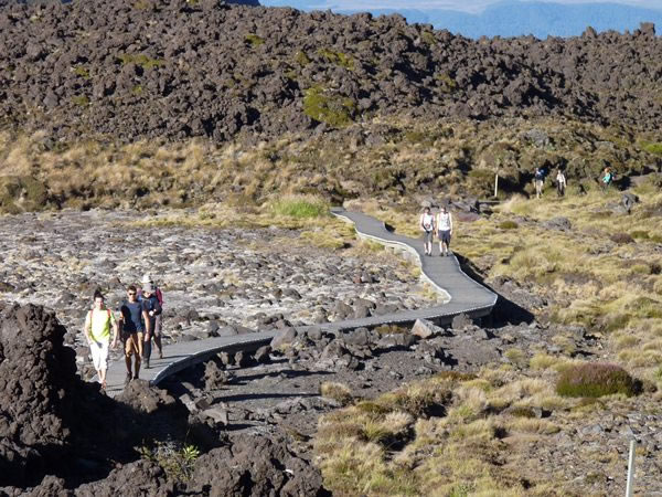 For the first half of our second day on the Northern Circuit, our route was along part of the most popular walking track in New Zealand. More than five years ago estimates of the numbers of people doing the Tongariro Alpine Crossing ranged from 60,000 to 100,000 per year, with more than a thousand hikers a day at peak periods. This is a photo looking back at just nine of them. |
