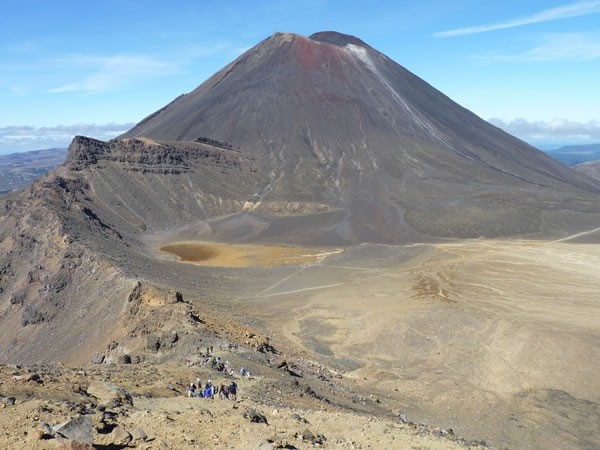 Looking back down onto the South Crater of Mt Tongariro and across at Mt Ngauruhoe.