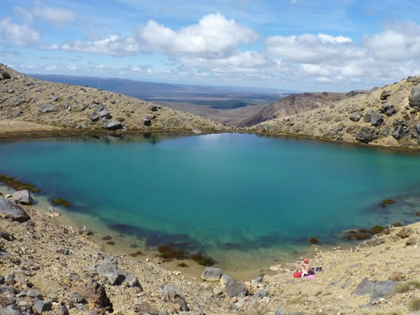 It was a lovely, hot afternoon. A Polish woman who was hiking the Northern Circuit paused to sunbathe on the edge of the lowest of the Emerald Lakes …