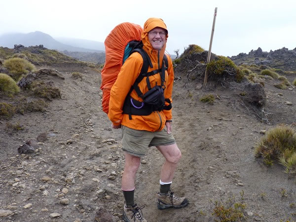 Shortly after 9:00 am, Heather took this picture of me. With an orange shirt, an orange parka, and an orange pack-cover, I resemble a Dutch football fan (and, indeed, I must confess that I supported the Netherlands and not Spain during the final of the 2010 men’s World Cup soccer). |