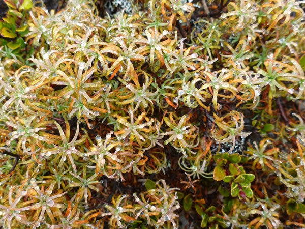 Raindrops, not on roses, but on still-to-be-identified succulent-like plants.