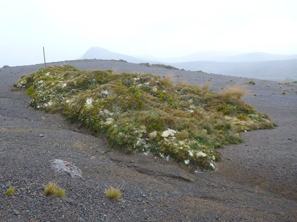 The desert-like volcanic scree was dotted with small islands of vegetation …