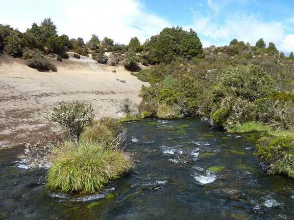 A view from the footbridge over the Ohinepango stream, looking east – down the Ohinepango stream.