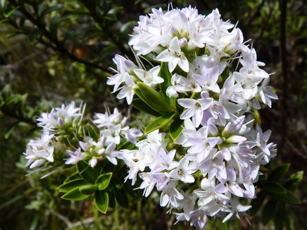 White flowers on a hebe bush near the Ohinepango stream.