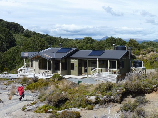 Heather returning to the Waihohonu hut after our hour-long stroll to the Ohinepango stream and back.