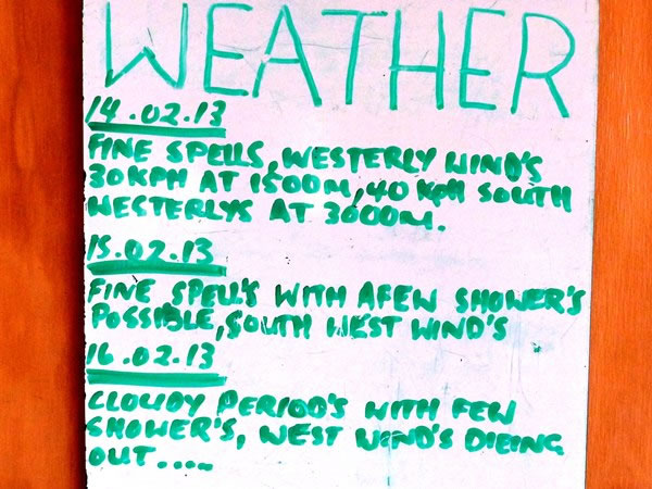 The Waihohonu hut warden wrote the weather forecast for the next three days on a notice board in the hut. Should the greengrocer’s apostrophe possibly be renamed the hut warden’s apostrophe?