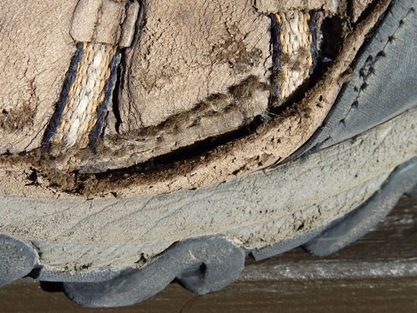 My hiking boots were the sole victim of our walk. They had served me superbly since 2009 on the Heaphy, Kepler, and Rakiura tracks in New Zealand; on the Overland track and on Bimberi Peak and Mts Kosciuszko, Bogong, and Bartle Frere in Australia; on Kings, Borah, Wheeler, Humphreys and Boundary Peaks and Mt Whitney in the USA; on the Camino de Santiago in Spain; and on tracks and trails in Brittany and the Luberon in France. I'm pretty sure I got my money's worth wearing them. This photo marks not only the end of my boots, but also the end of this web-album. (This is the last picture in this album.) |