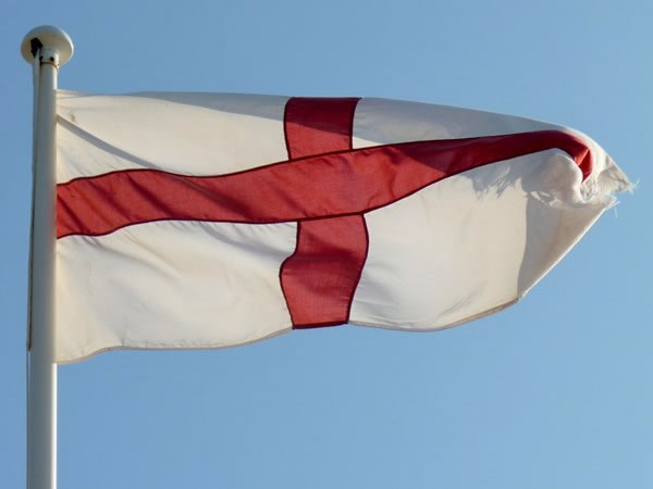 … a photograph of an English flag, which features the red cross of …