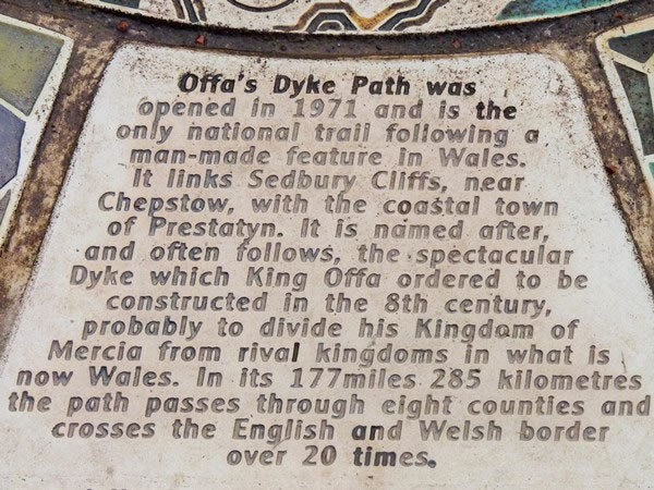 The tiled display we stood next to for our group photograph contained some relevant information about Offa’s Dyke and the path we’d be following.