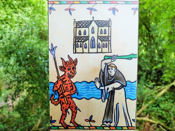 A colourful signpost on the hills above the true left-bank of the River Wye at a spot known as the Devil’s Pulpit, which – in the words of Keith Carter and Henry Stedman’s guide to the Offa’s Dyke Path – has a “sensational view of … |