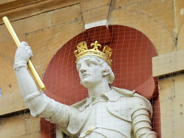 … Henry V was born in Monmouth Castle in 1387. This statue of Henry V stands high above Agincourt Square in the centre of the town. In William Shakespeare’s play, Henry V, much is made of King Henry’s origins. At one stage, for example, Henry V says: