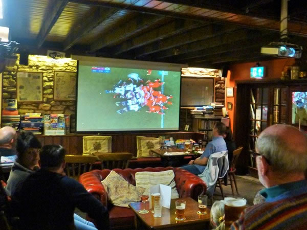 It was the opening night of the 2015 rugby world cup competition and, as a result, the pub in Llangattock Lingoed was packed to the rafters, so Paul, one of owners of the Old Rectory B&B, drove us down to Pandy, where he’d booked a table for us in one of the town’s pubs. Not only did we see some of the night’s rugby (in this photo, pub patrons are looking at an aerial view of a Fiji-England scrum in a game that England won 35-11), but …