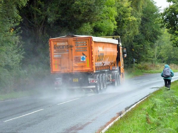 We experienced a brief spell of light rain shortly after leaving Hay-on-Wye, and were occasionally showered with spray by passing traffic while we walked alongside a small section of the A438.