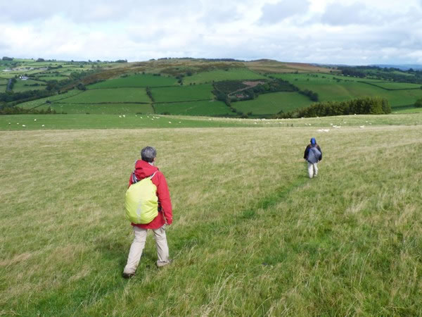 … farmers’ fields. This picture of Heather and Bob was taken after we had got well and truly lost, and had spent about half-an-hour wandering across and around various fields. The cause? Someone had removed an Offa’s Dyke Path sign from a farm gate, and our maps were also slightly misleading at this juncture.