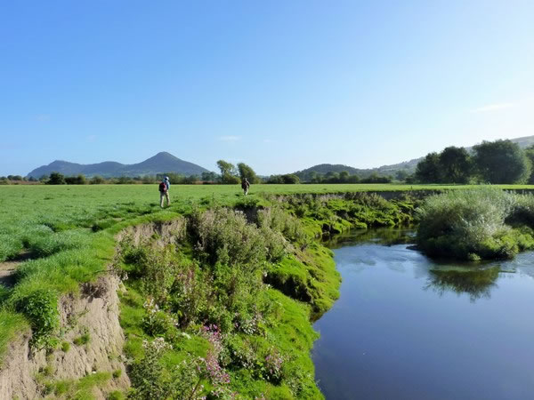 Under a cloudless sky, the day’s walk was initially beside the River Severn.