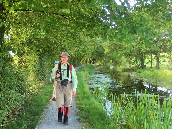A photograph by Bob of me walking on the tow-path alongside the Montgomery Canal. I’m wearing gaiters because two Australians we met on Day 5 while we were walking across the Black Mountains told us that the trail was especially muddy near a town called Four Crosses, and we were heading there on Day 10. However, we encountered almost no mud – and, what is more, we had no rain whatsoever during our final week walking the Offa’s Dyke Path. Bliss!